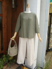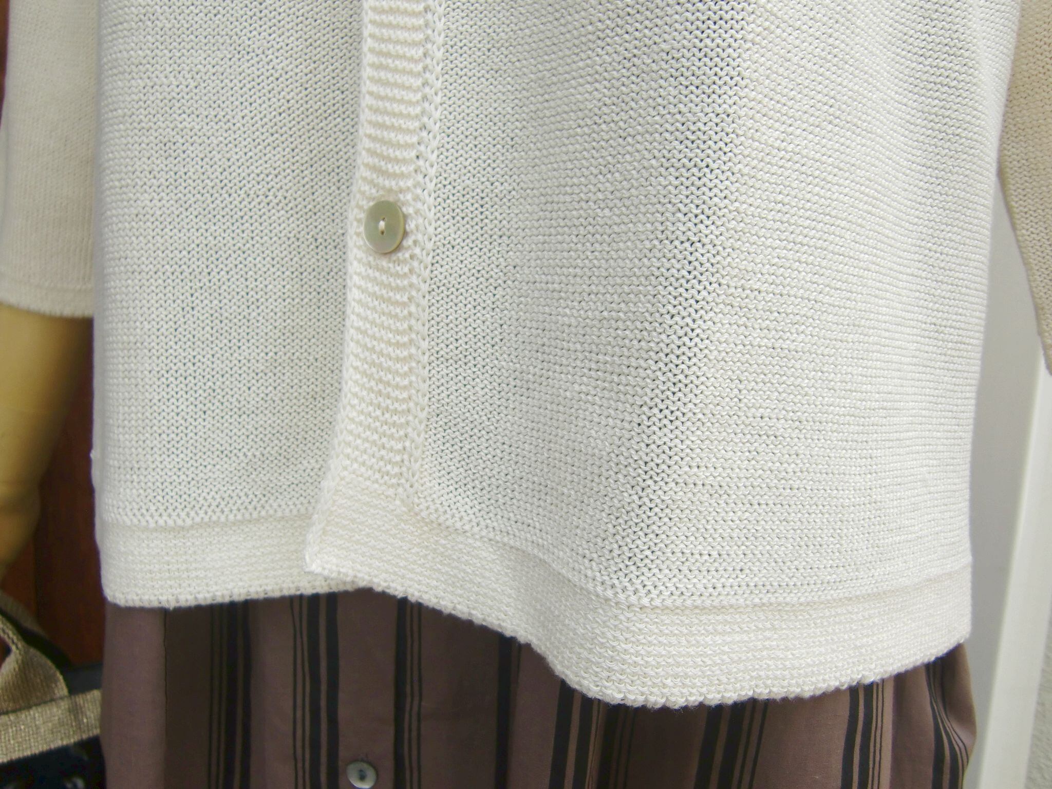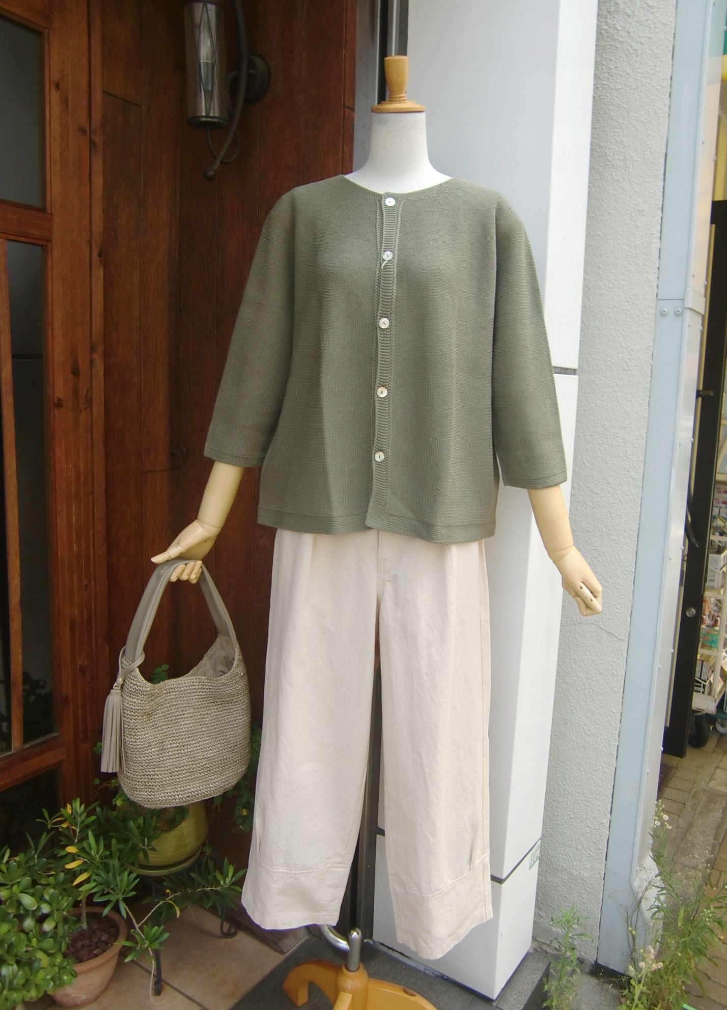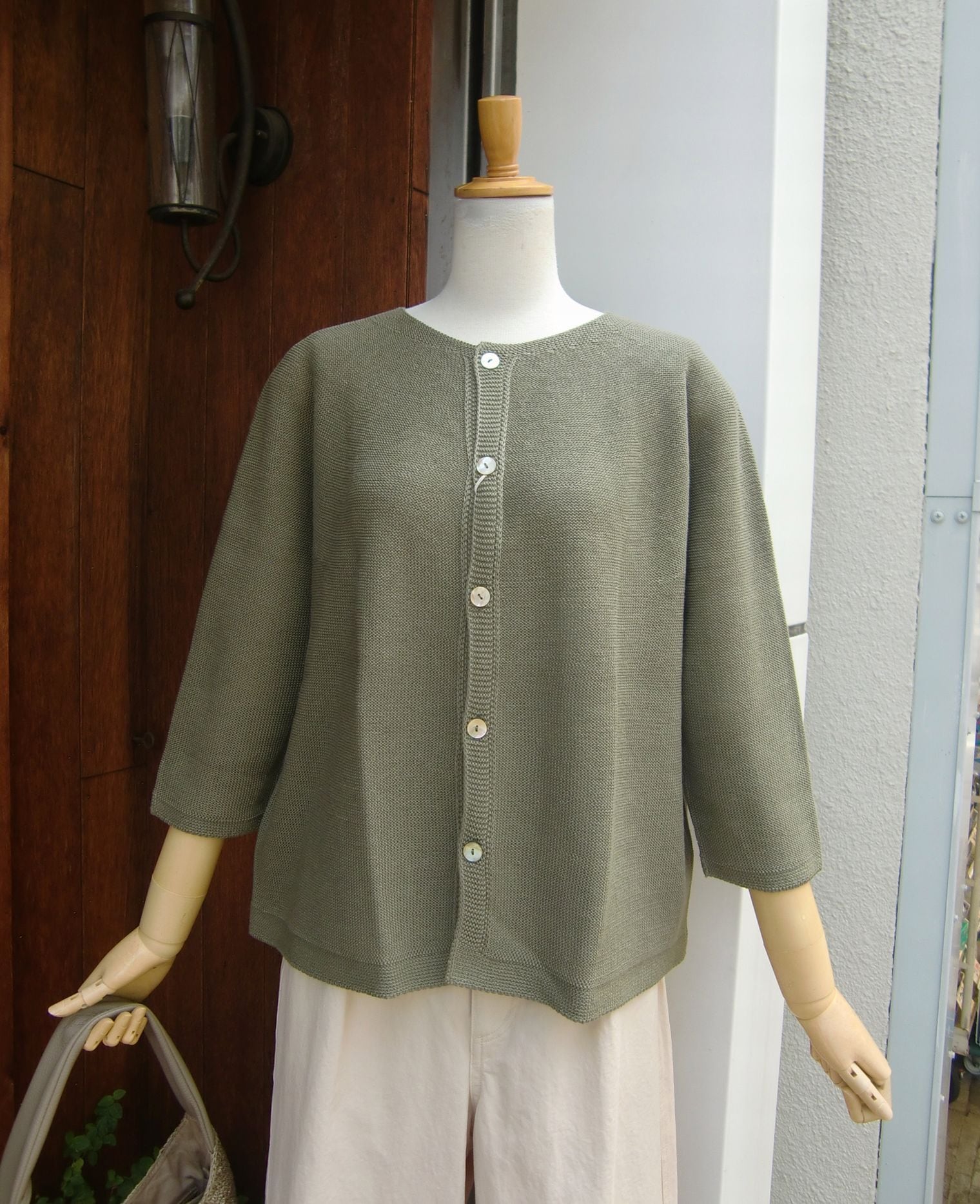 ◇まるでリネンのようなドライな風合いを味わえる≪ヌメ≫コットンニットカーディガン。