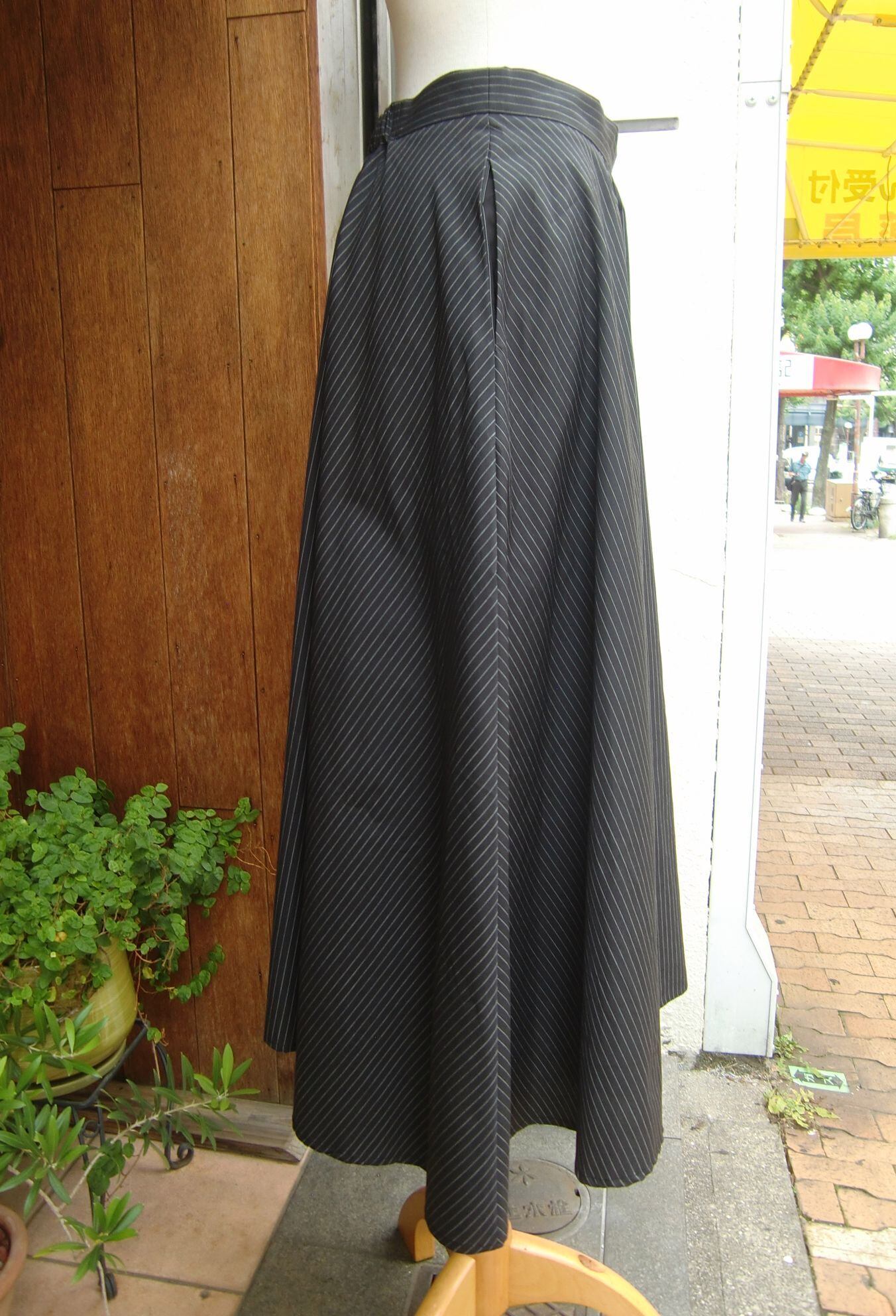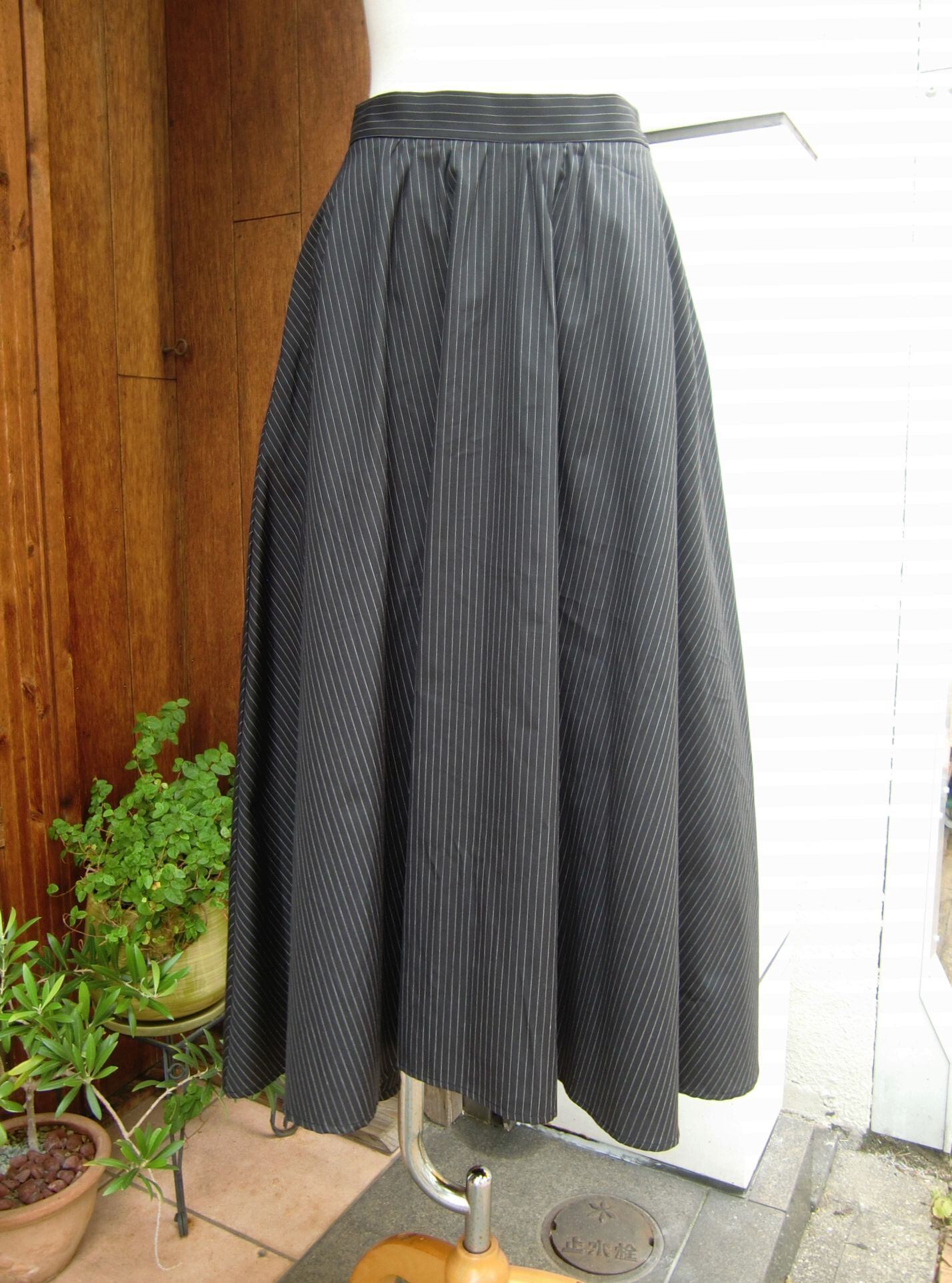 ◇マニッシュな細ストライプを使った≪ラプカルソン≫フレアスカート。