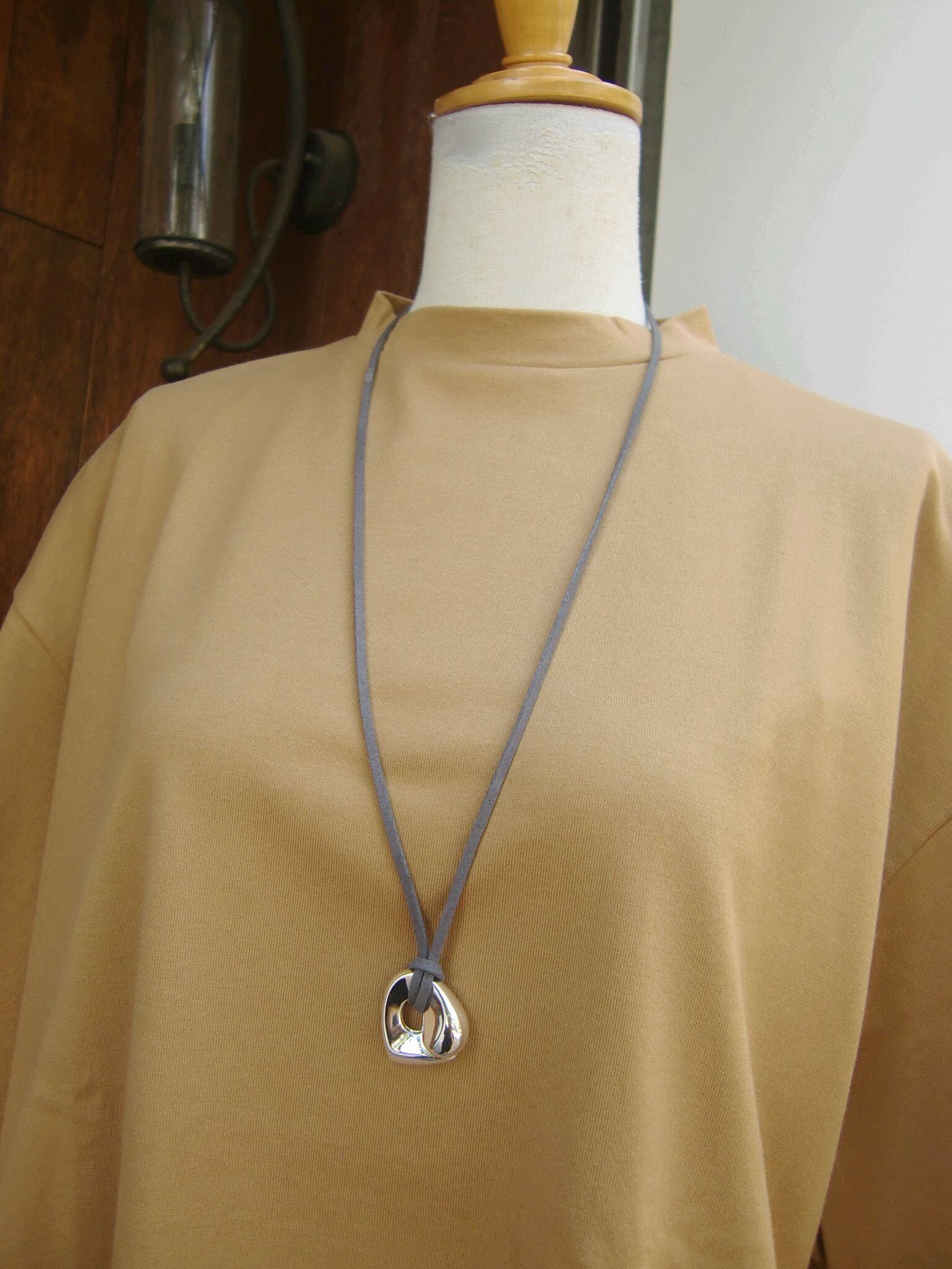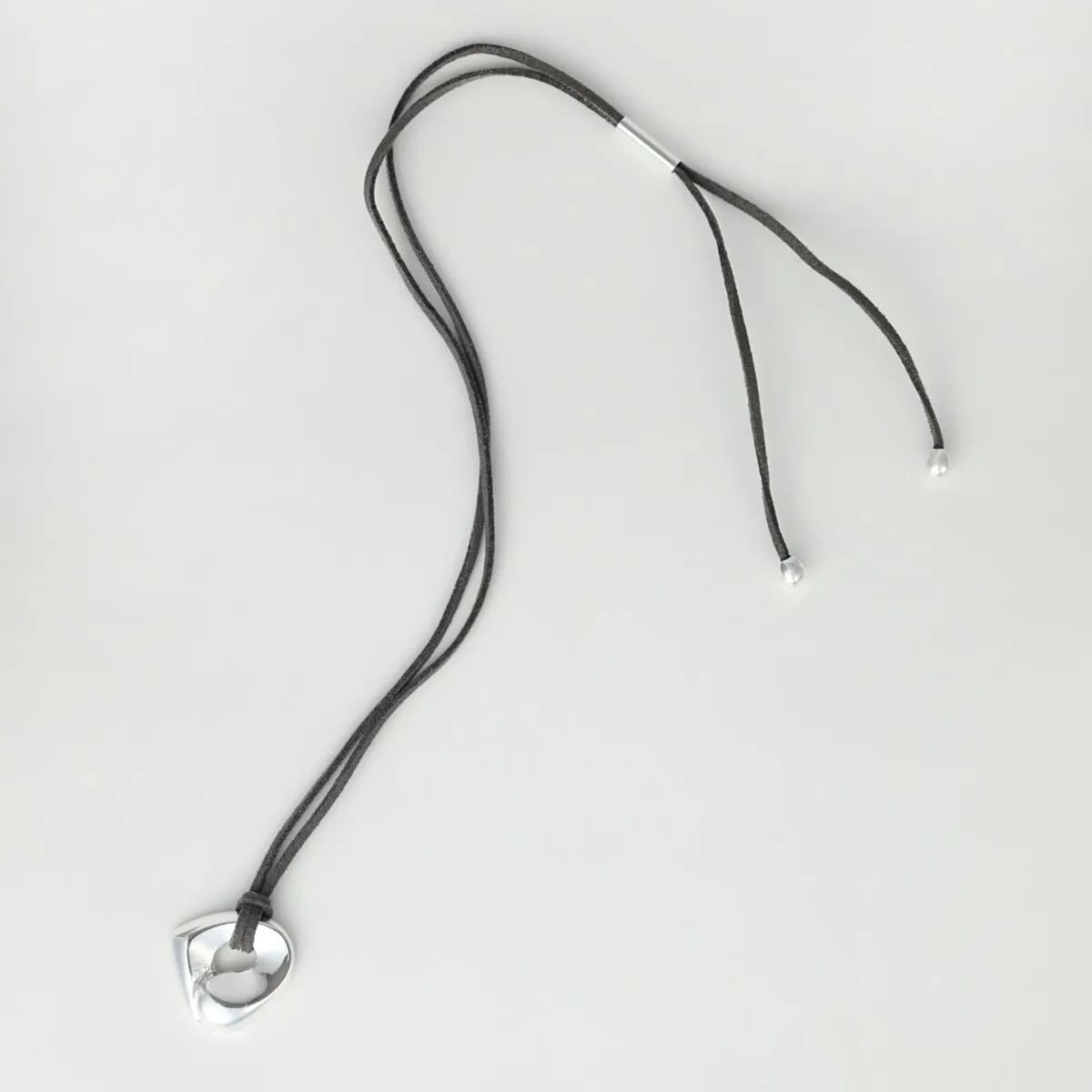 ◇有機的なトライアングル型モチーフ付きのフェイクスエードコードネックレス。