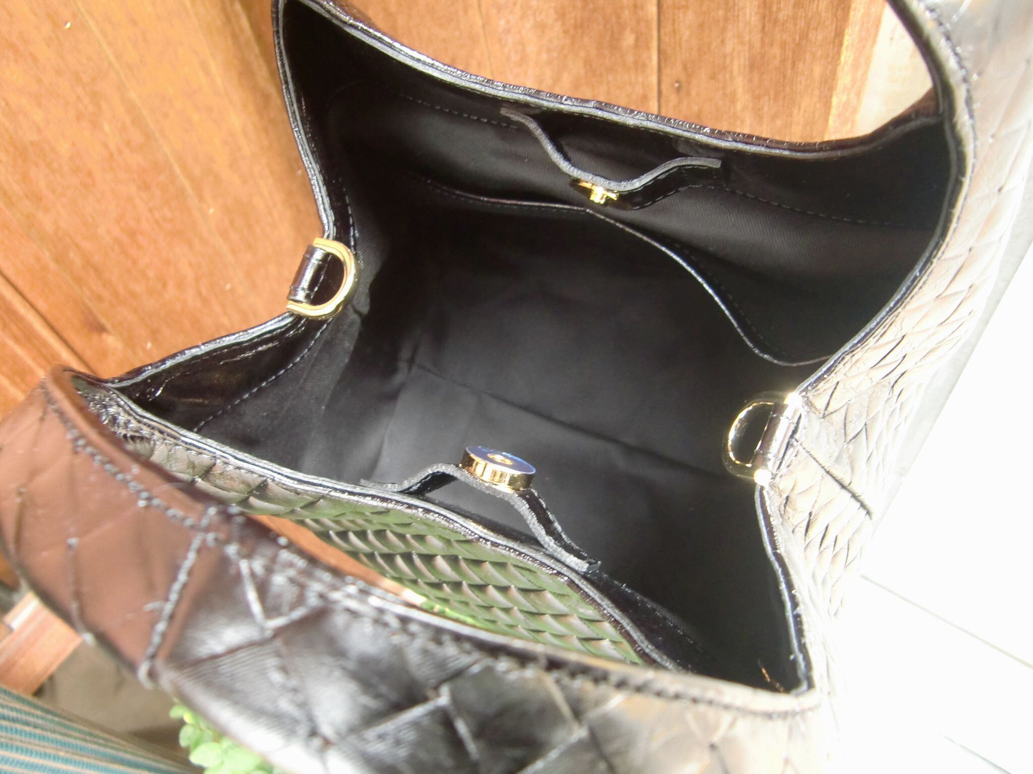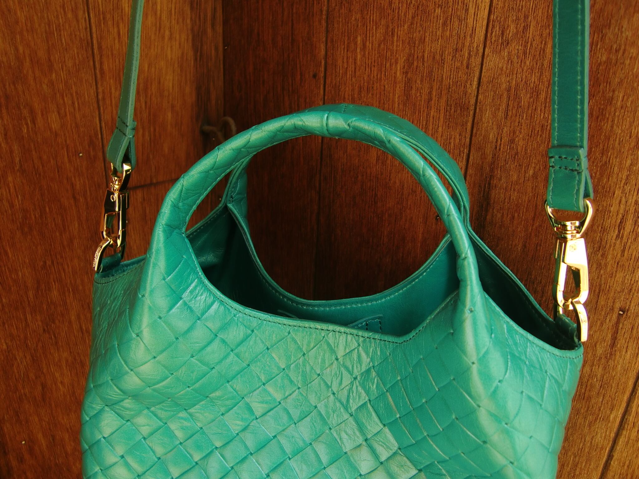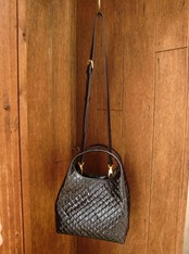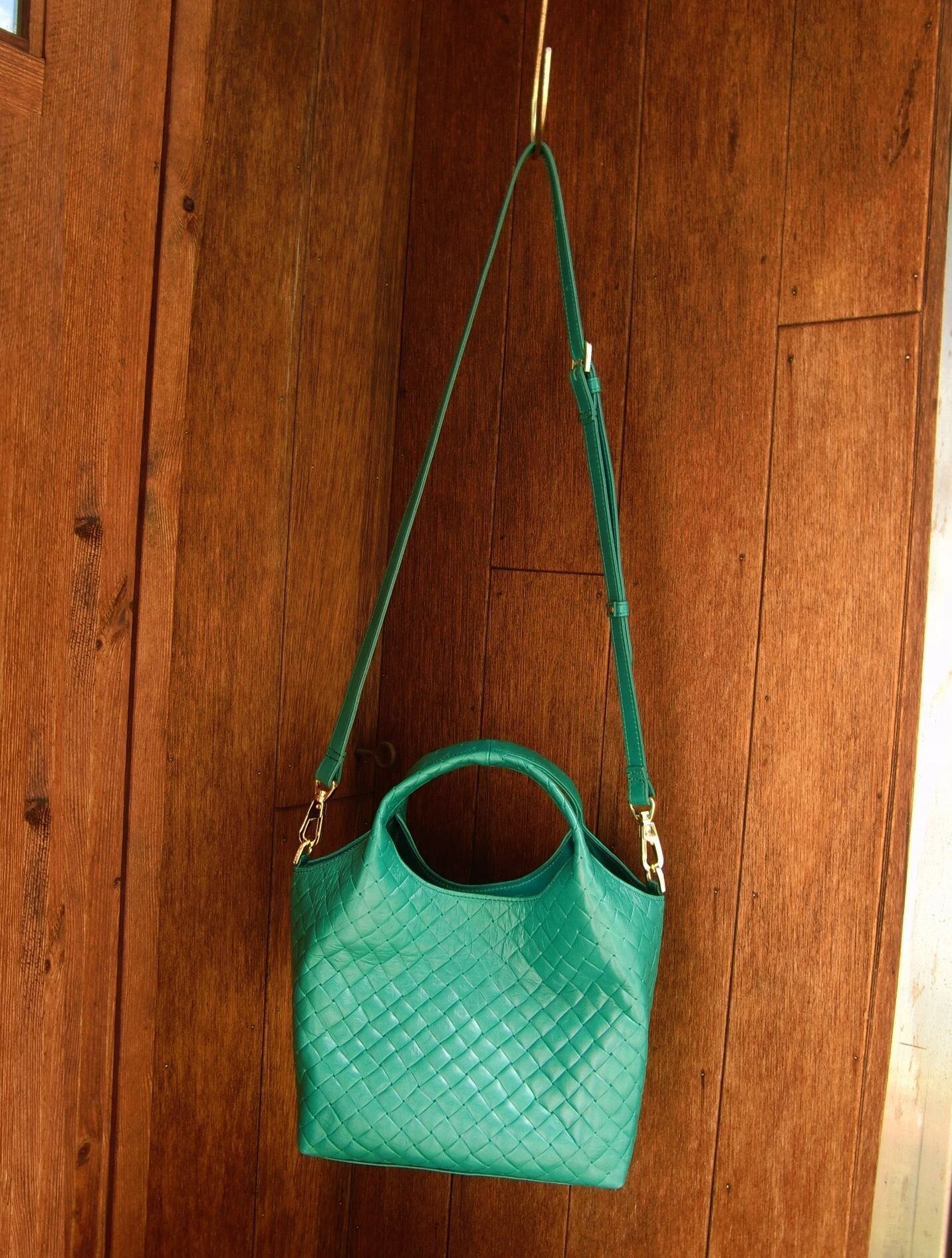 メッシュ調の型押しを施したイタリアンレザーを使った2wayバッグは、