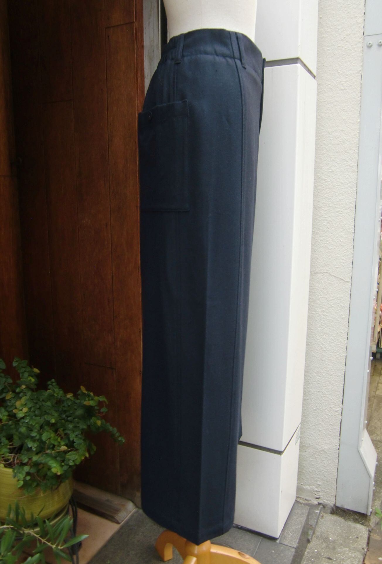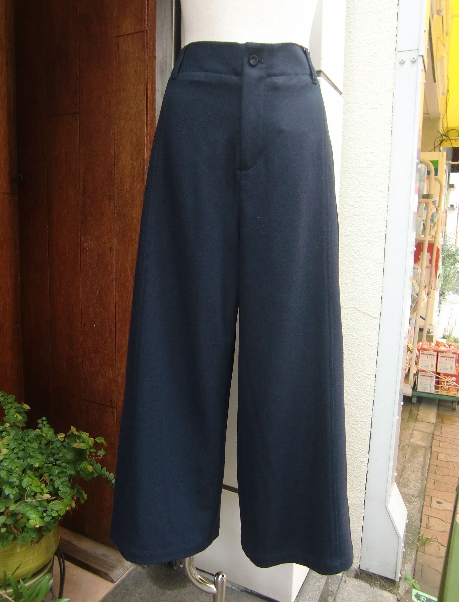 ウールブレンド素材の少し長めクロップドパンツ。