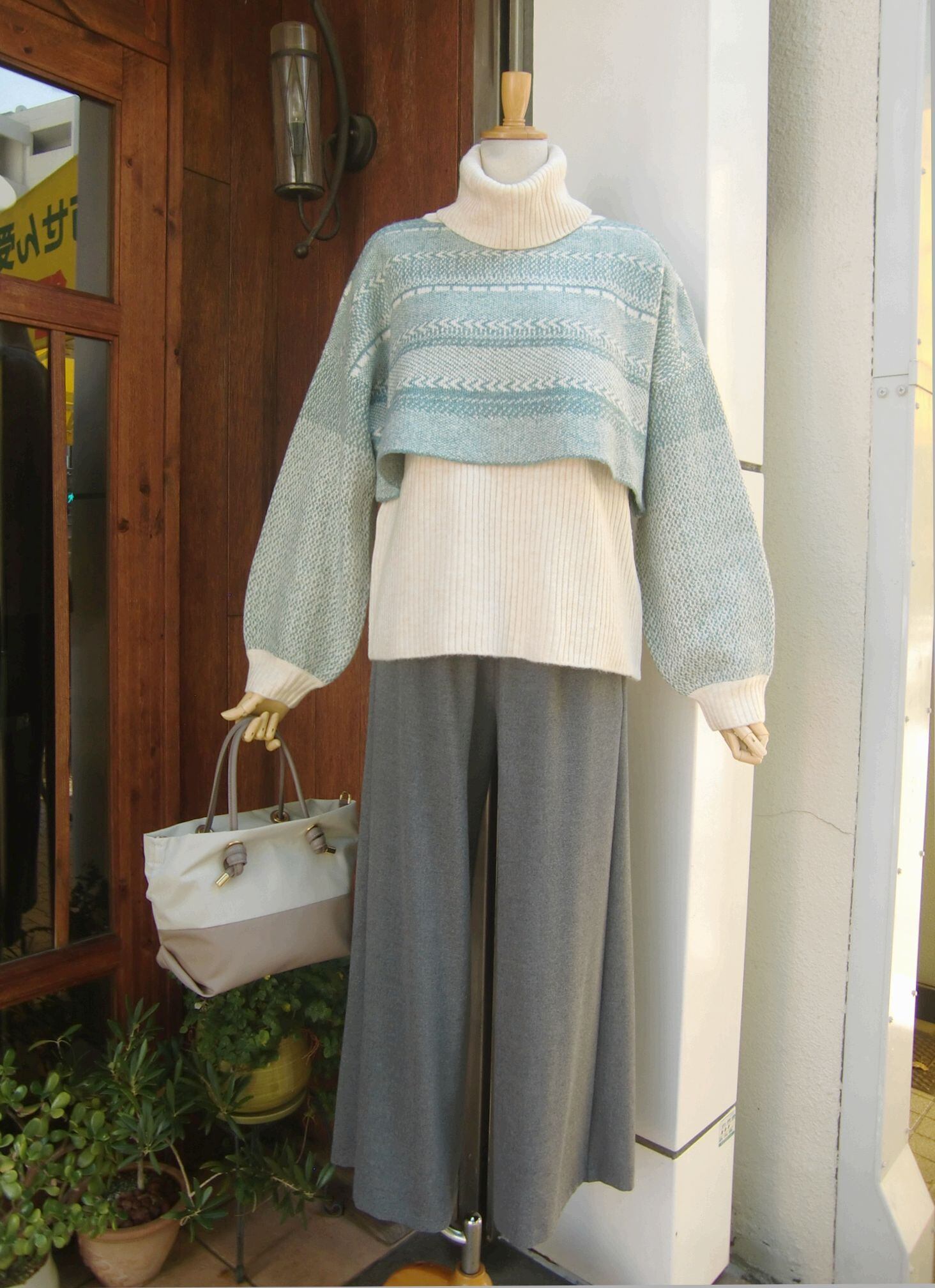 首元に存在感のある大きめのタートルネックが、冬の装いを演出します。