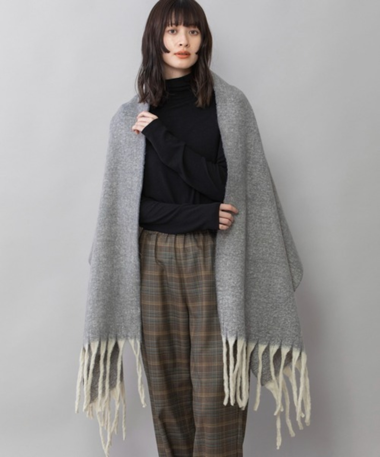 冬らしいあたたかみのあるデザインとアイボリーの長めのフリンジがアクセントに。