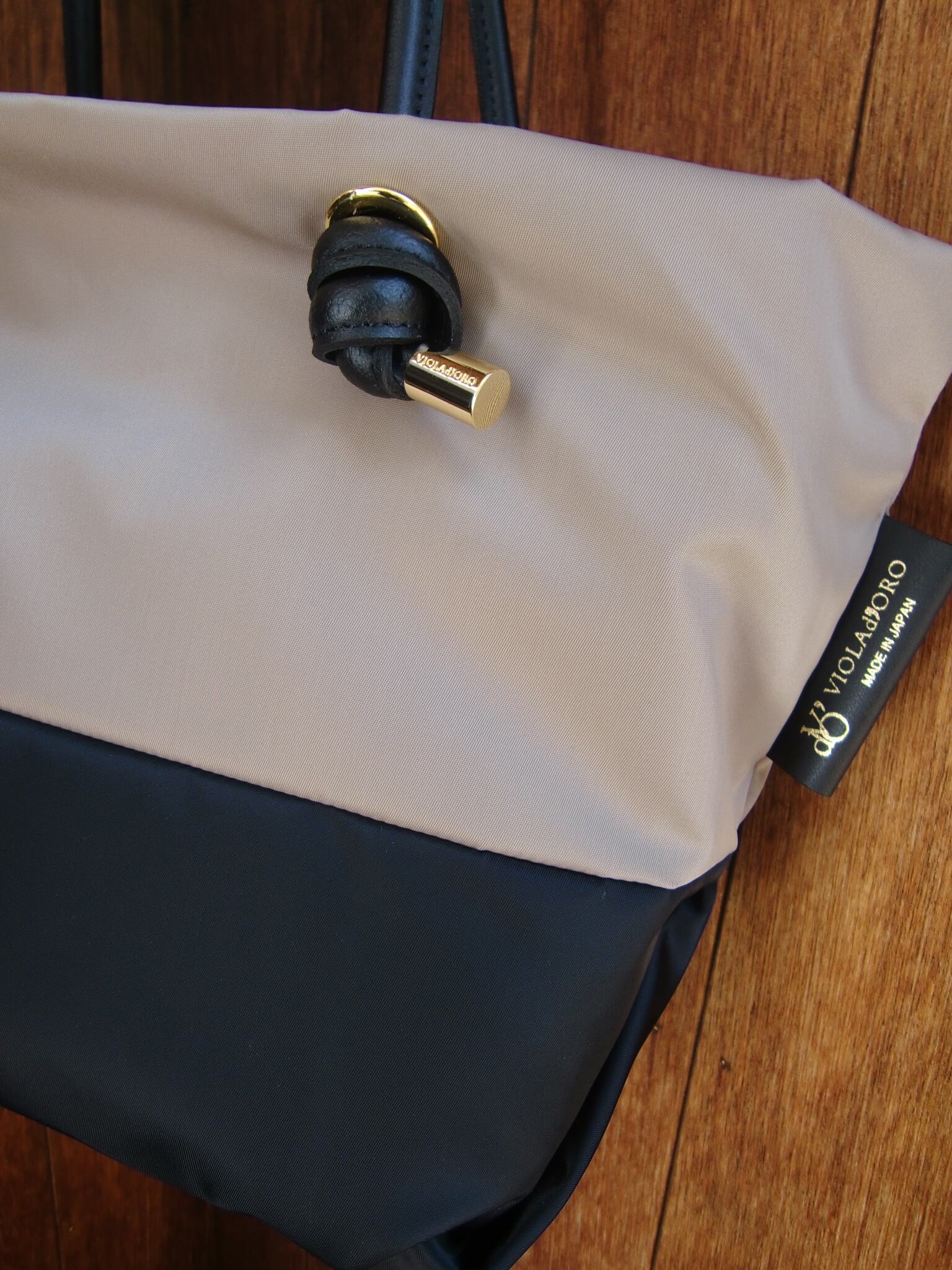 VIOLAd'ORO :ノットハンドル・ツートンナイロントート "BIANCA" M サイズ ¥22,000 (税込)