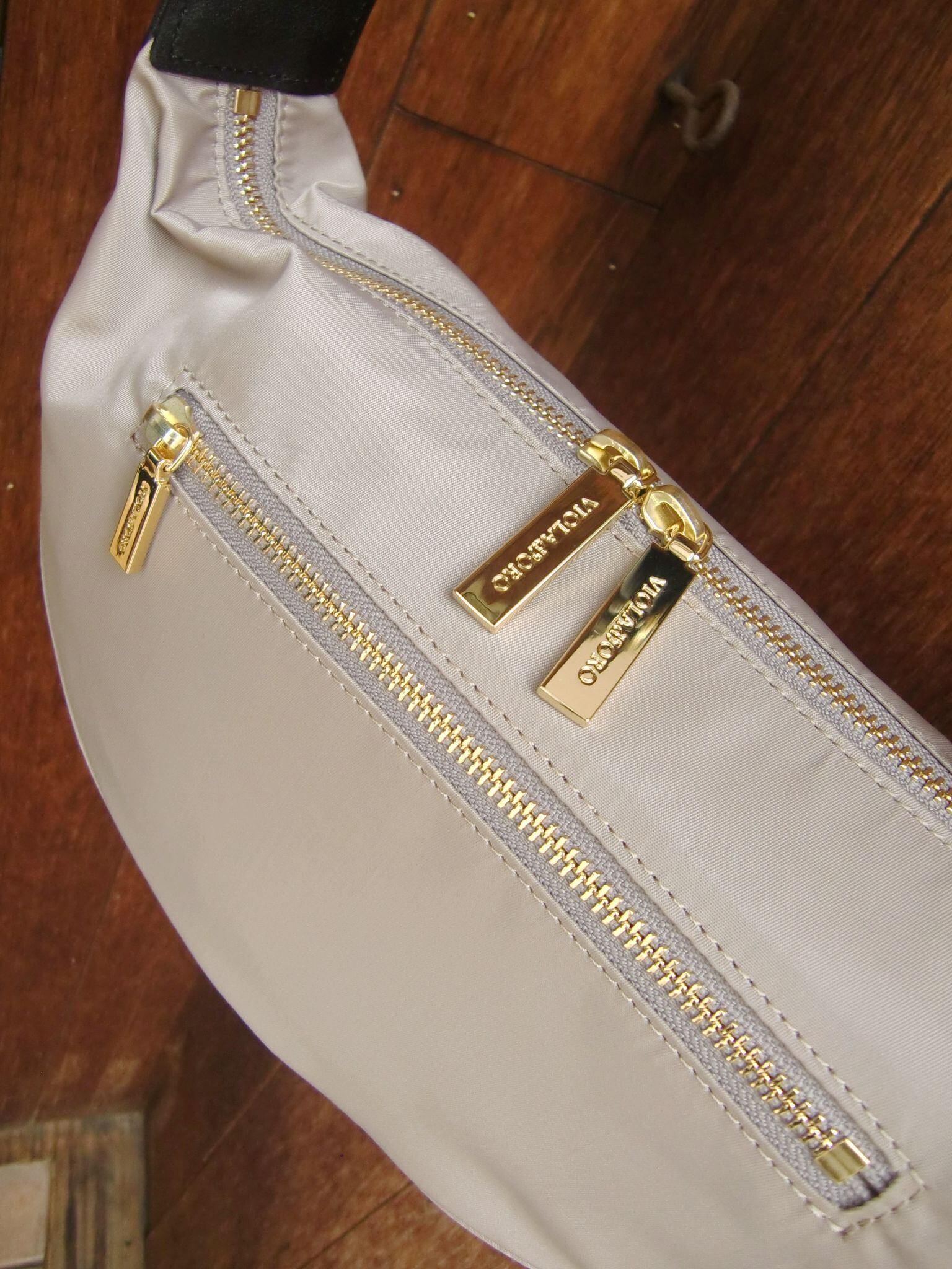 ◇抜け感のあるナイロン素材のボディバッグ。≪ヴィオラドーロ≫らしくカジュアルになり過ぎないよう