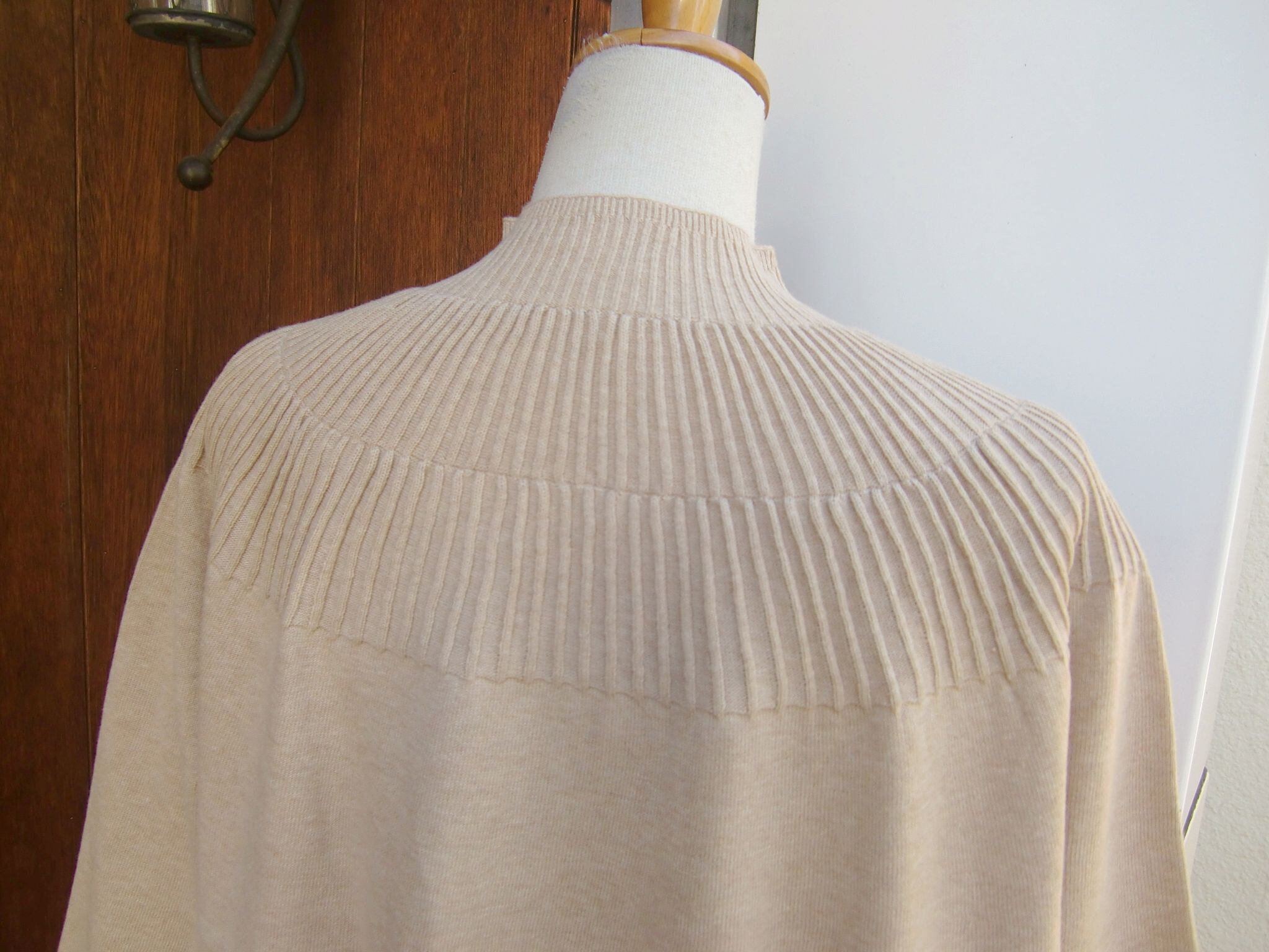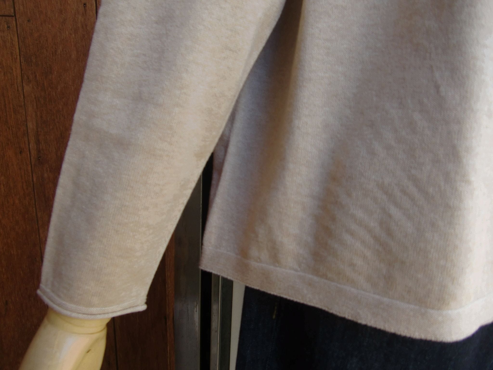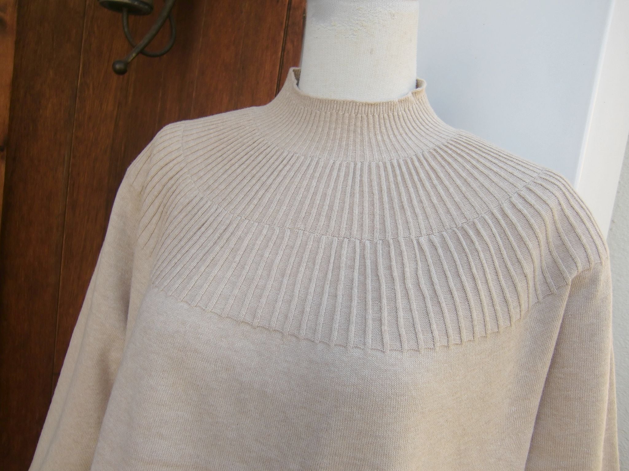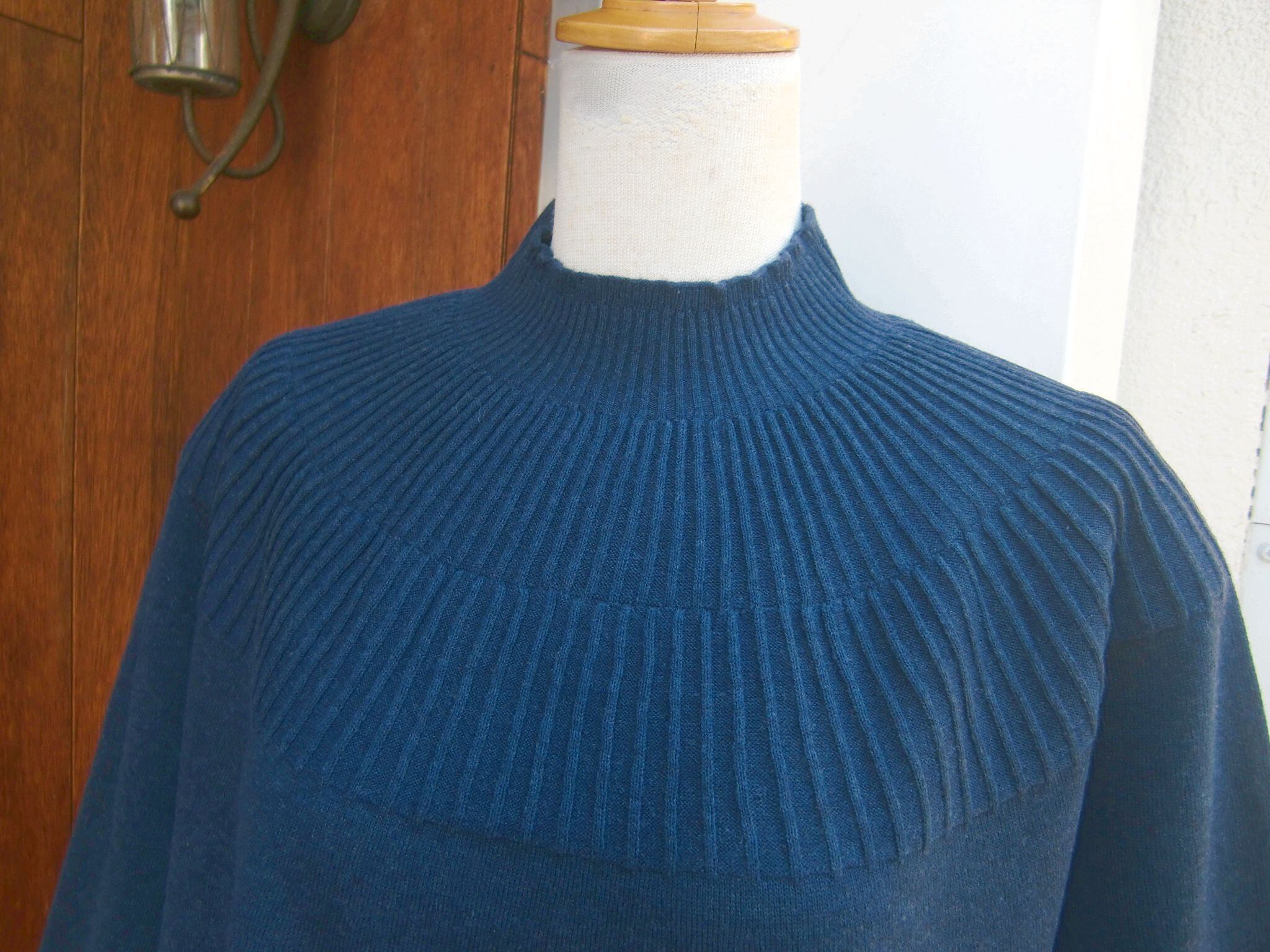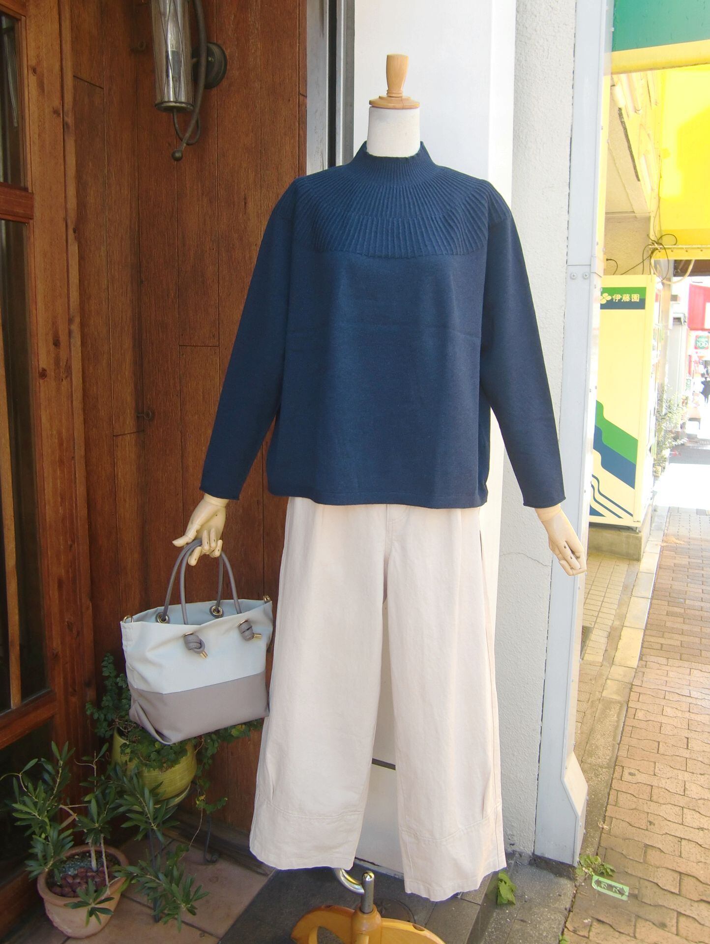 ◇モックネックの衿元に放射状のリブをデザインした≪ヌメ≫プルオーバーニット。
